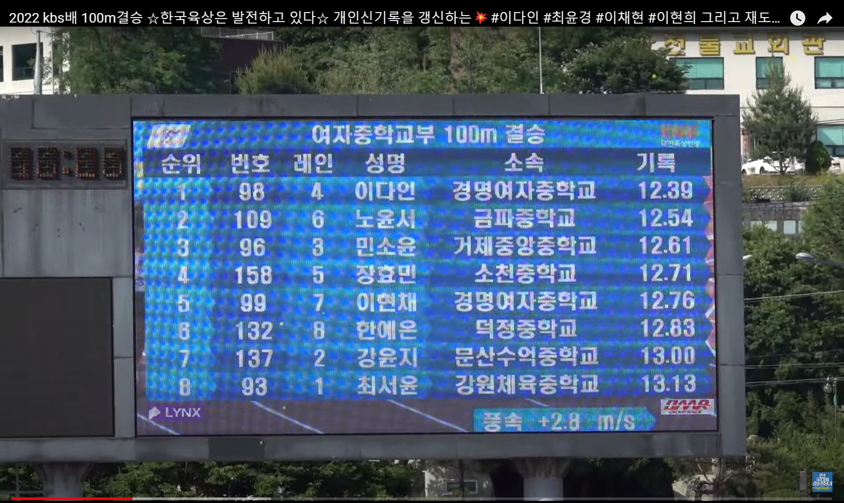 여중 기록. 이다인 12.39, 노윤서 12.54