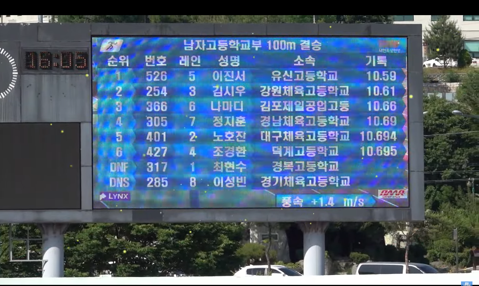 남고 100미터 결승. 이진서 10.59, 김시우 10.61
