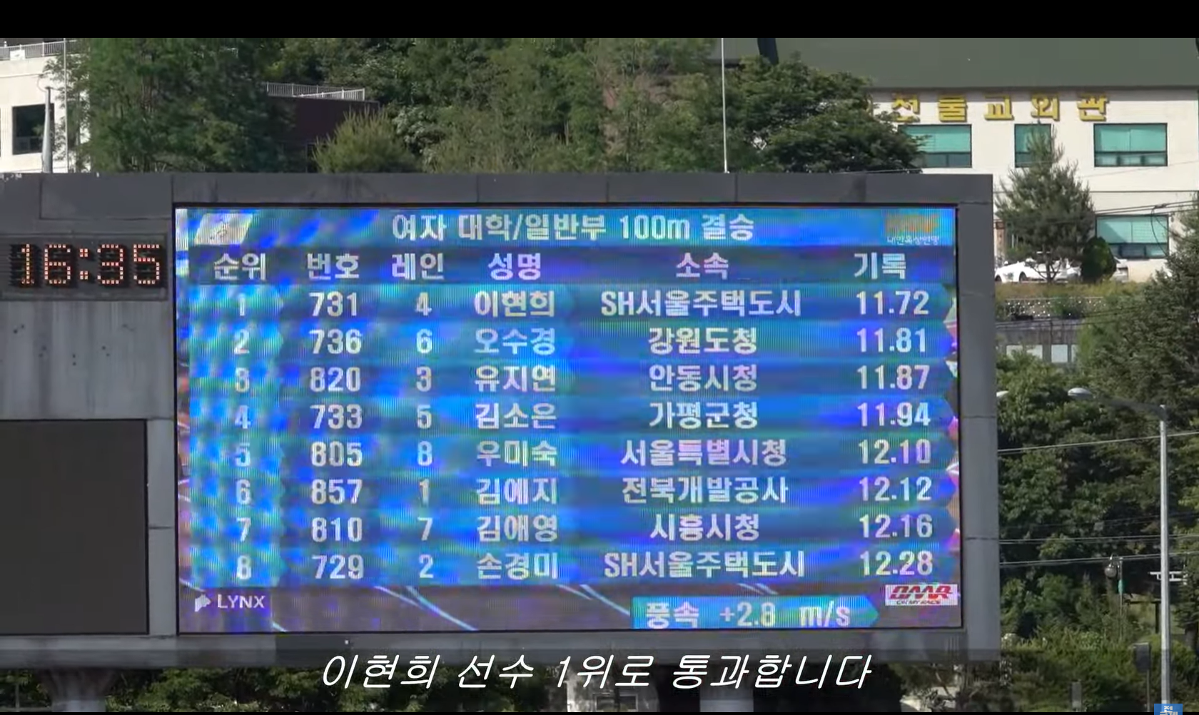 여자 대학-일반 100미터 결승. 이현희 11.72, 오수경 11.81