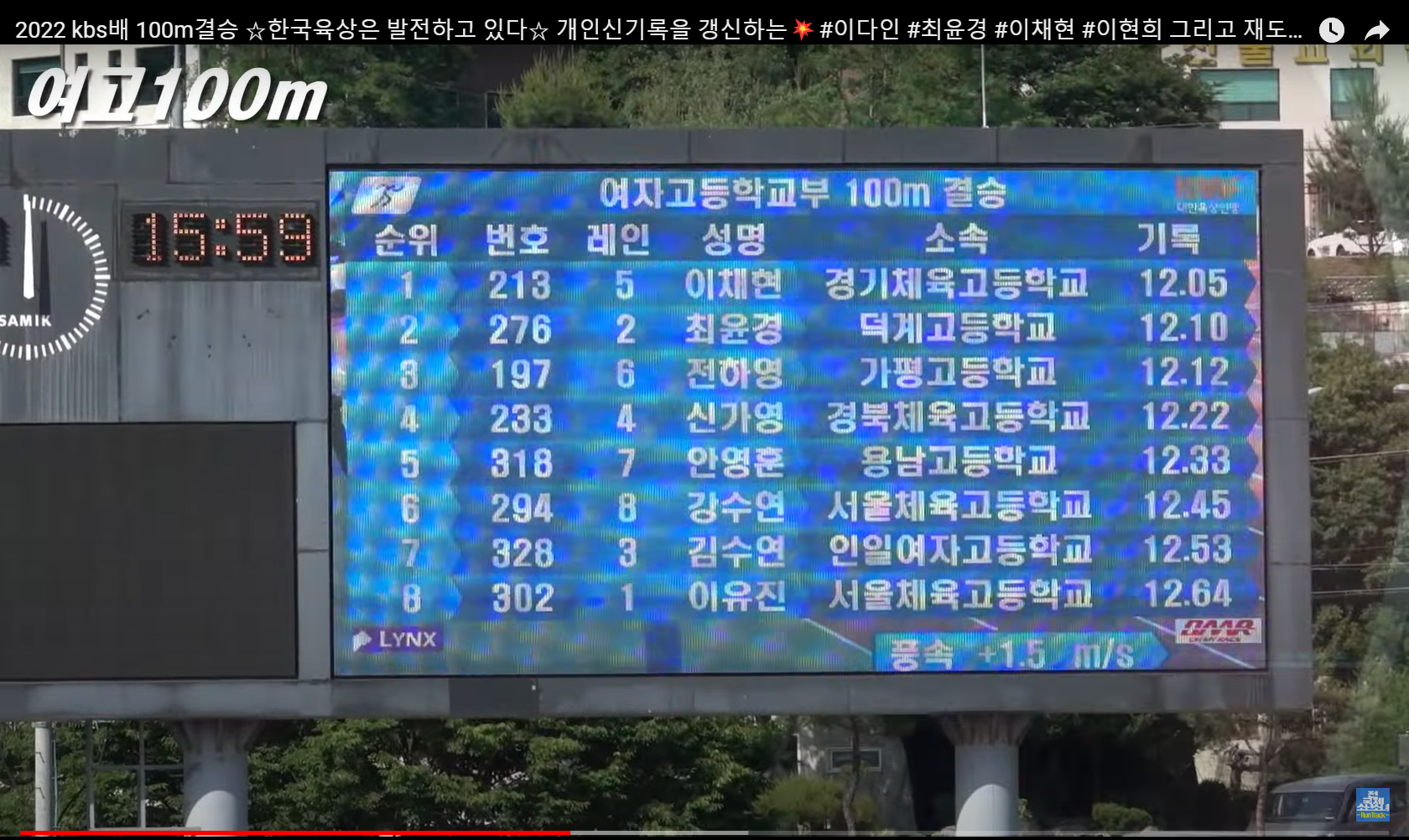 여고 100미터 결승. 이채현 12.05, 최윤경 12.10