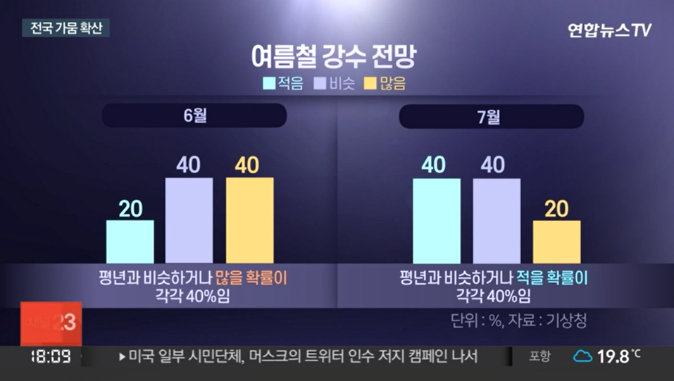 결국 해결사는 장맛비인데, 기상청에 따르면 6월 하순은 다소 많은 비가 예상되지만 7월은 예년보다 비가 적게 내릴 것으로 예측됐습니다.