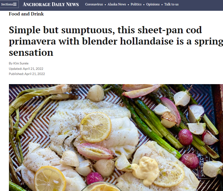 "Simple but sumptuous, this sheet-pan cod primavera with blender hollandaise is a spring sensation...." — headline, The Alaska Dispatch News, 20 Apr. 2022