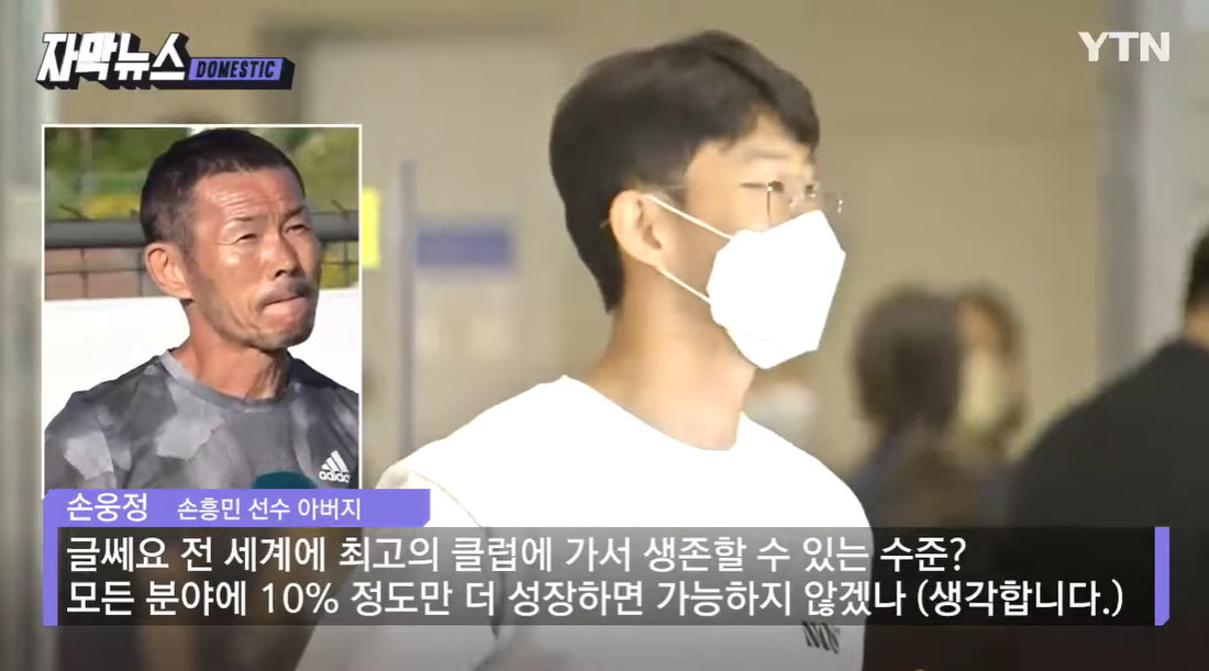 [손웅정 감독 / 손흥민 선수 아버지 : (손흥민 선수는 아직 월드클래스가 아니라고 하셨는데 그 생각 변함없으세요?) 저는 지금도 변함없습니다. 월드클래스요? 글쎄요 전 세계에 최고의 클럽에 가서 생존할 수 있는 수준? 모든 분야에 10% 정도만 더 성장하면 가능하지 않겠나 (생각합니다.)]