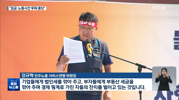 [강규혁/민주노총 서비스연맹 위원장 : "기업들에게 법인세를 깎아주고, 부자들에게 부동산 세금을 깎아주며 경제 핑계로 가진 자들의 잔치를 벌이고 있는 것입니다."]