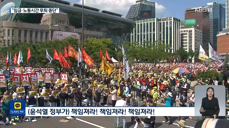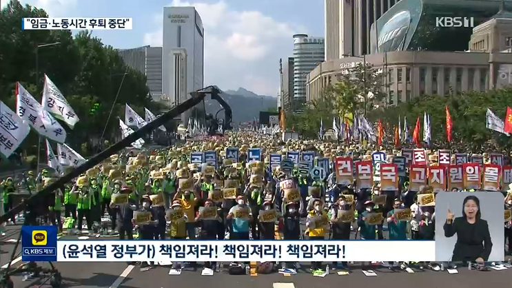 ["(윤석열 정부가) 책임져라! 책임져라! 책임져라!"]