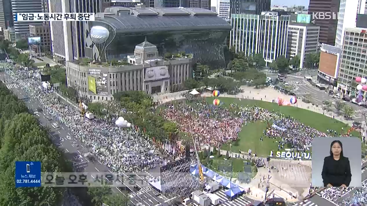 오늘 오후, 서울 광장에서 시작된 민주노총의 전국 노동자 대회입니다.