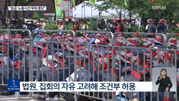 다만 법원이 3개 차로, 3만 명 내 진행을 조건으로 집회와 행진을 허용했습니다.