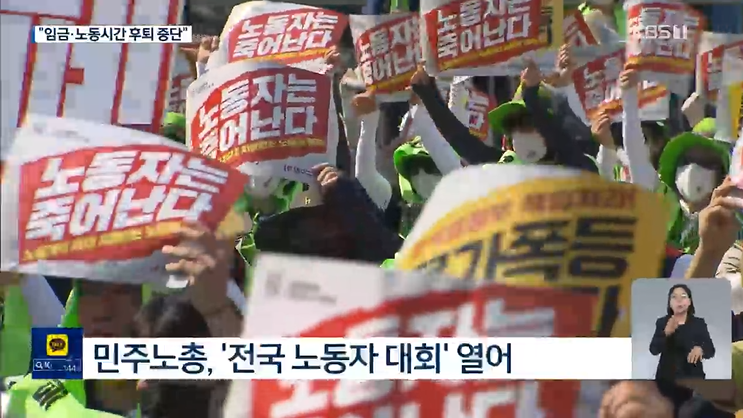 임금과 노동시간 후퇴 중단을 요구하며 정부가 '친기업, 반노동' 정책을 펼치고 있다고 비판했습니다.