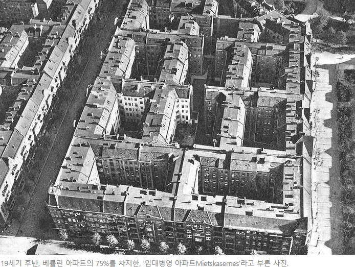 19세기 후반, 베를린 아파트의 75%를 차지한, ‘임대병영 아파트Mietskasernes’라고 부른 사진.