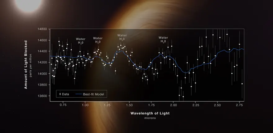 The undulations in the amount of sunlight passing through the planet’s atmosphere correspond to water vapour.