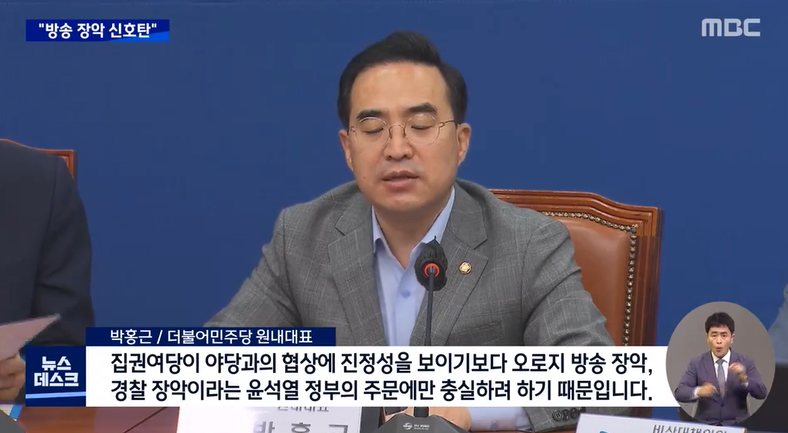 "집권여당이 야당과의 협상에 진정성을 보이기보다 오로지 방송 장악, 경찰 장악이라는 윤석열 정부의 주문에만 충실하려 하기 때문입니다."