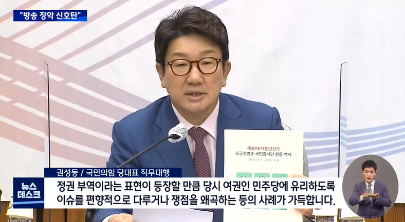 KBS, MBC를 언론노조가 좌지우지한다, 편파적이라고 주장했던 권성동 국민의힘 대표 직무대행, 오늘도 당 회의에서 같은 주장을 되풀이했습니다.