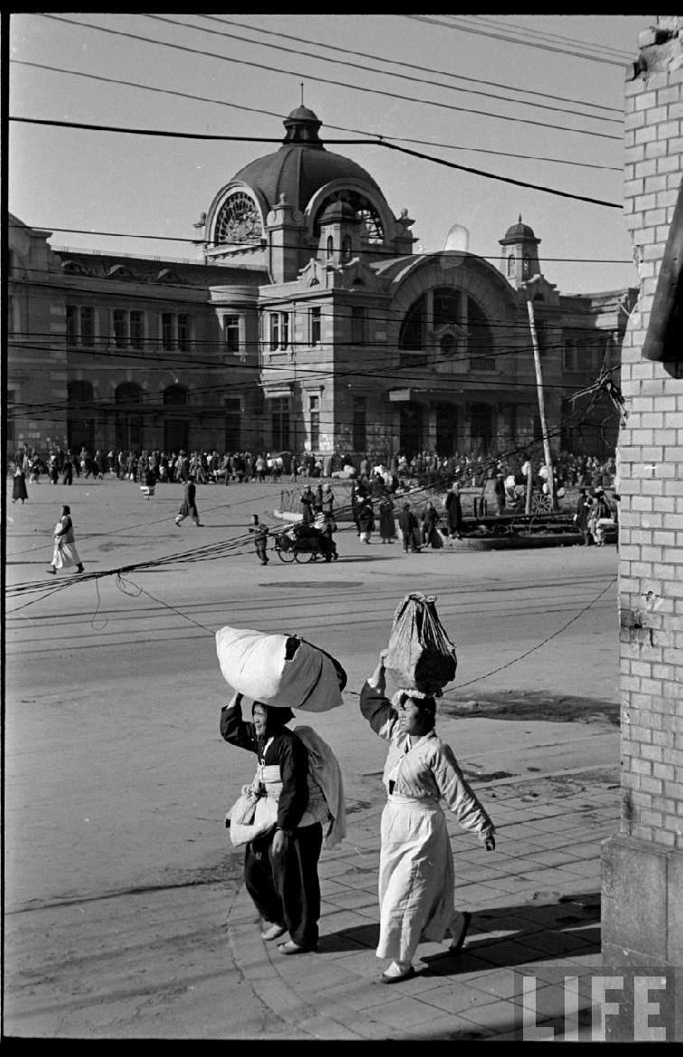 1950-53 서울역 주변. 머리에 짐을 이고 가는 한국 여성들.