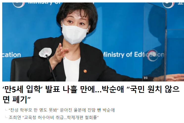 박순애의 오류는, 실제 교육 현장에서, 학부모와 교사, 아이들이 겪고 있는 어려움을 전혀 조사하지 않고, 무슨 '성과'를 내 보겠다는 성급함에서 비롯되었다.