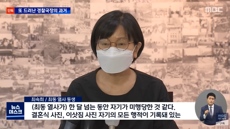 "(최동 열사가) 한 달 넘는 동안 자기가 미행당한 것 같다. 결혼식 사진, 이삿짐 사진 자기의 모든 행적이 기록돼 있는 사진을 보여주면서. 그래서 거기에 너무 놀라고 황당했다(고 말했었다)."
