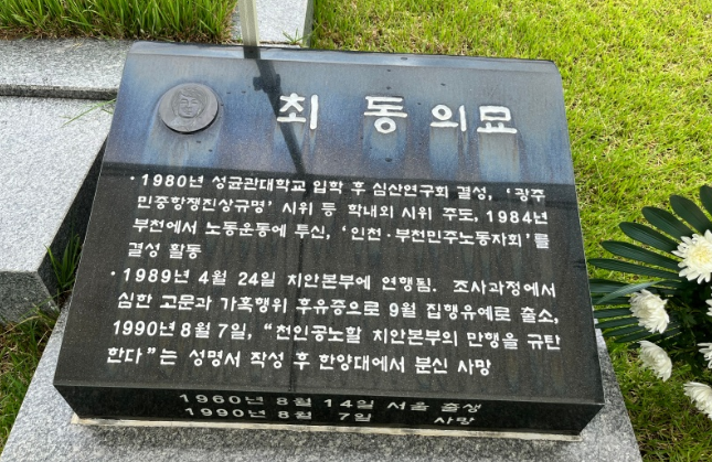 이런 가운데 오늘 민주화운동기념공원에선 김 국장의 대학 선배로 함께 인노회 활동을 했던 최동 열사의 32주기 추모식이 열렸습니다.