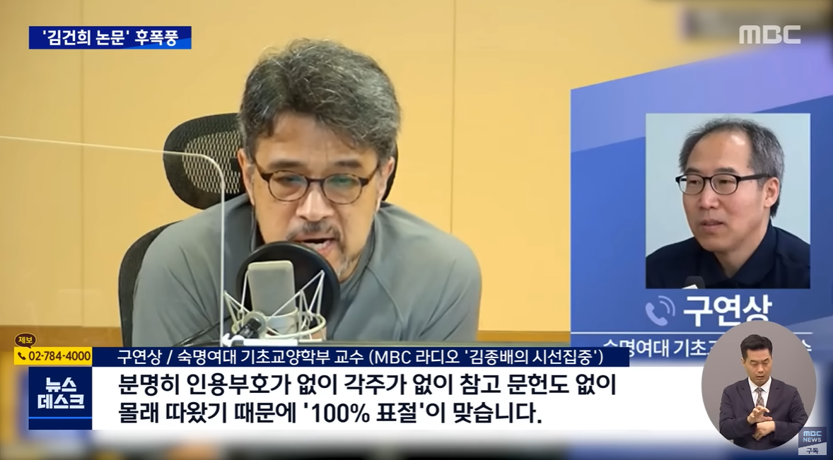 지난주 국민대가 김건희 여사의 논문들이 연구 부정이 아니다, 이렇게 결론을 내렸었죠. 그런데 논문을 도용당했다는 숙명여대 교수가 명백한 표절이 맞다면서, 국민대가 시스...