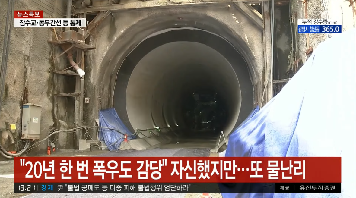 반포천 유역 분리 터널, 시간당 92.5mm 막아내지 못했다.