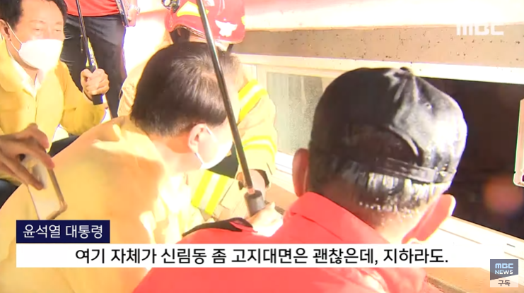 윤석열 대화 요지는, 서초동 자기 아파트는 언덕에 있는데도 저층이 침수되는 것을 자기가 봤다. (신림동 반지하) 저지대이니, 도림천 범람으로 직격탄을 맞았다.