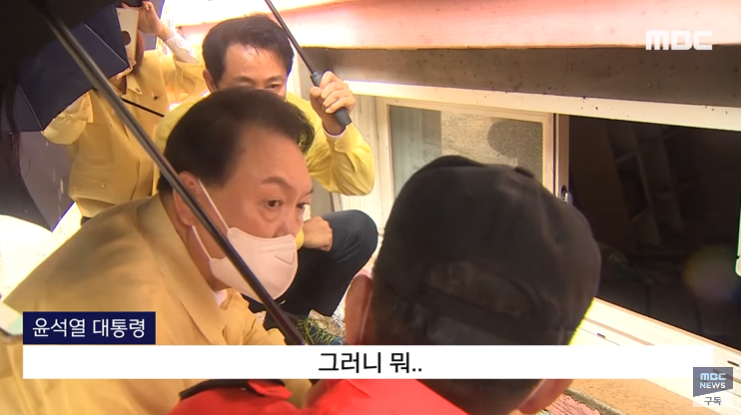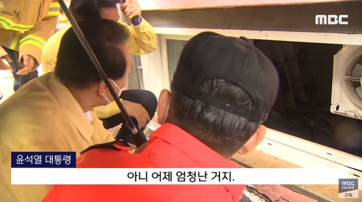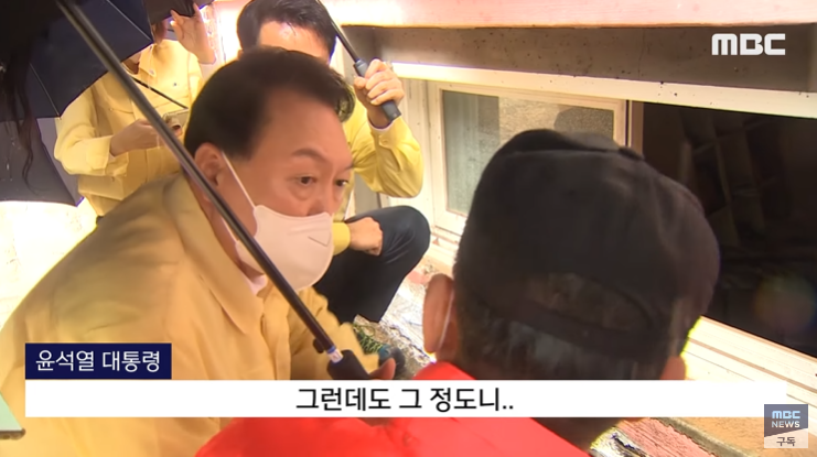 그런데도 그 정도니. (윤석열 2022년 8월 9일, 서울 관악구 신림 반지하 3명 수몰 현장 방문에서 소방대원에게 한 말) "