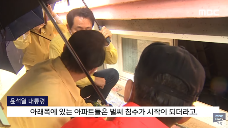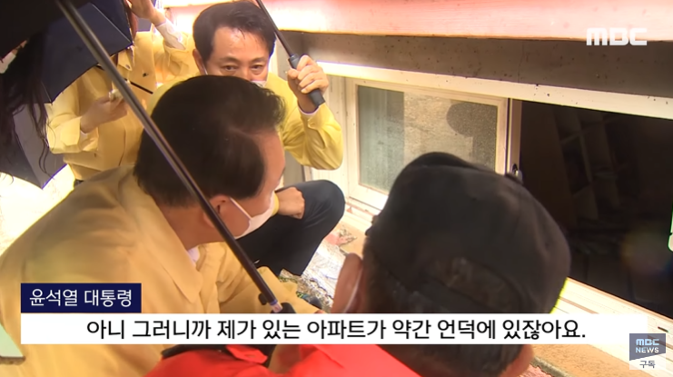 그렇지 않고, 윤석열 대화만 놓고 보면, 서초동 고지대 언덕 아파트의 저층도 침수되는 판국에, 이런 저지대 반지하는 오죽 하겠느냐, 침수되는 것이 당연하다고 말하는 것 같다.