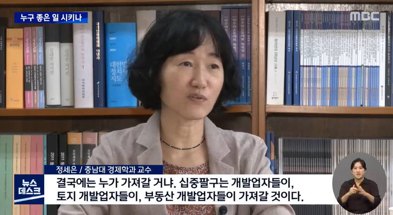 "결국에는 누가 가져갈 거냐. 십중팔구는 개발업자들이, 토지 개발업자들이, 부동산 개발업자들이 가져갈 것이다."