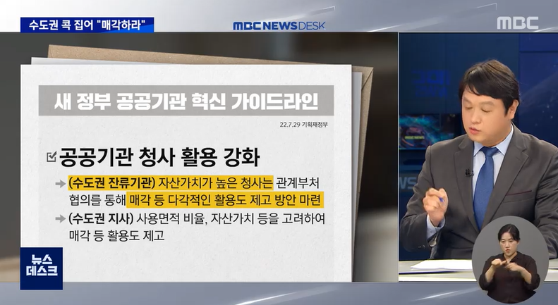 특히 이번에는 수도권을 콕 짚어서, 수도권에 본사가 있으면 공공기관은 자산가치가 높은 청사 매각을 검토하고, 수도권에 지사가 있는 곳도 매각 등 활용도를 높이라고 지시했습니다.