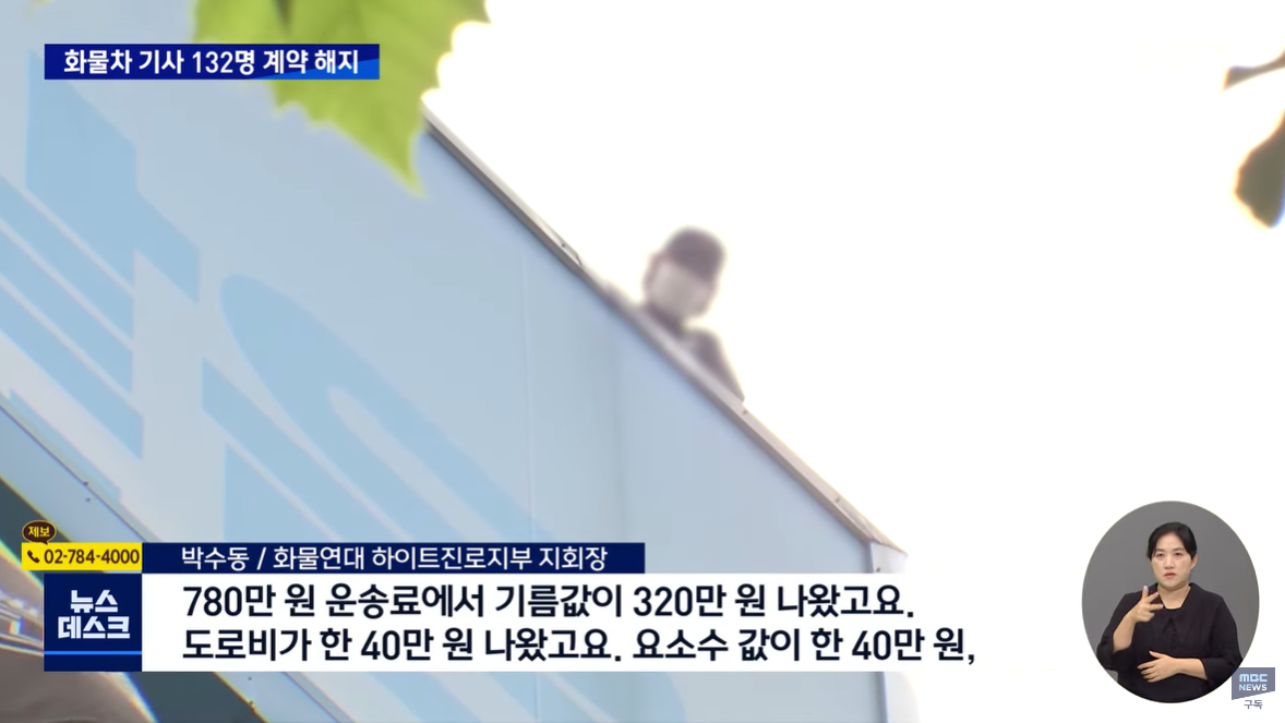 "780만 원 운송료에서 기름값이 320만 원 나왔고요. 도로비가 한 40만 원 나왔고요. 요소수 값이 한 40만 원, 거기에 제 차 할부 값이 340만 원 나갔고요. 실질적으로 집에 가져다주는 돈이 없죠."