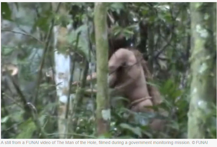 A still from a FUNAI video of The Man of the Hole, filmed during a government monitoring mission.