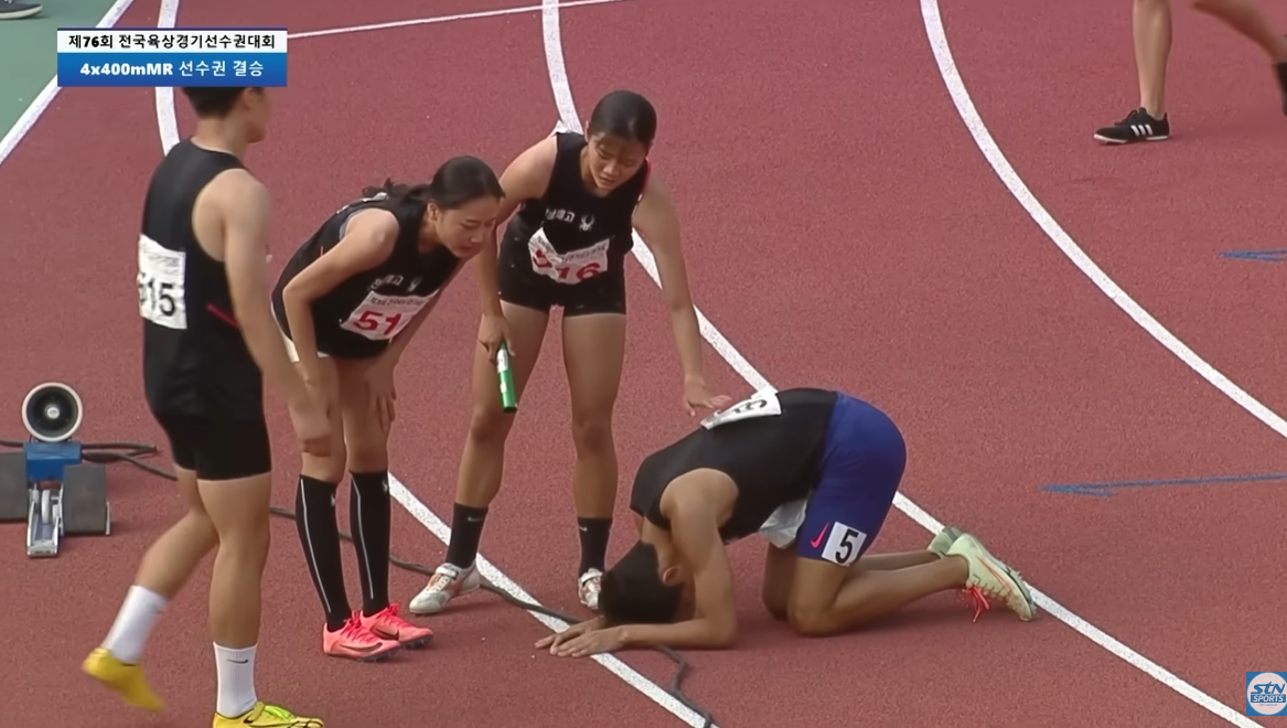 배건율, 최지선, 양예빈, 유지웅 전남체고 육상 선수들이 400미터 믹스 릴레이 4X400m 경기에서 한국 신기록 3분 33초 04 기록을 세웠다.