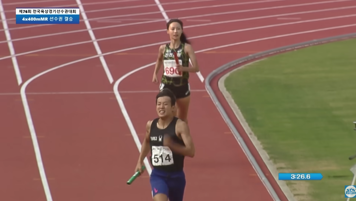 전남체고 한국 신기록, 3분 33초 04. 남녀 통합 4X400 미터. 믹스 릴레이.