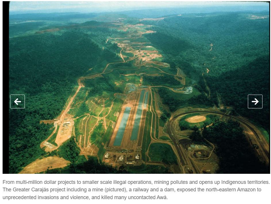 광산, 철도, 댐 공사 등, '더 위대한 카라자쉬 Carajas 프로젝트'로 인해, 유례없는 침략과 폭력이 발생했고, 특히 아마존 북동쪽, 미접촉 원주민 '아와 Awa' 부족이 학살당했다.