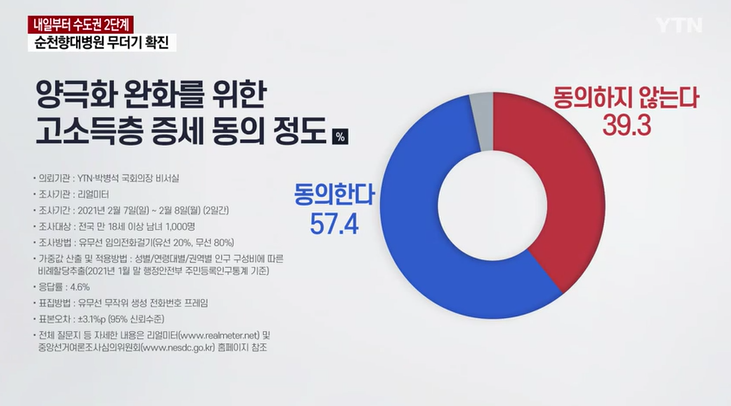 양극화 해소를 위한 증세에 찬성한다 57.4%, 반대 (39.3%)