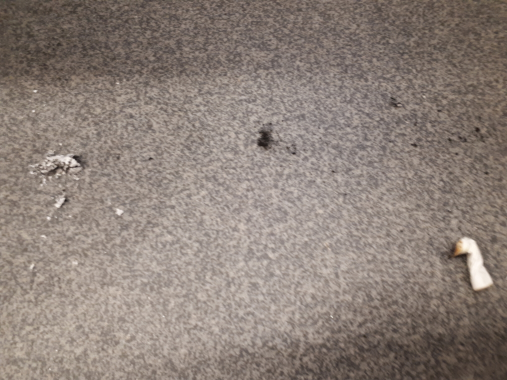 어떤 한 백인 남자가 쪼그려 혼자 앉아 있더니, 지하철 한 칸 바닥에다 담배 꽁초를 버리고 세인트 패트릭 역에서 내렸다.