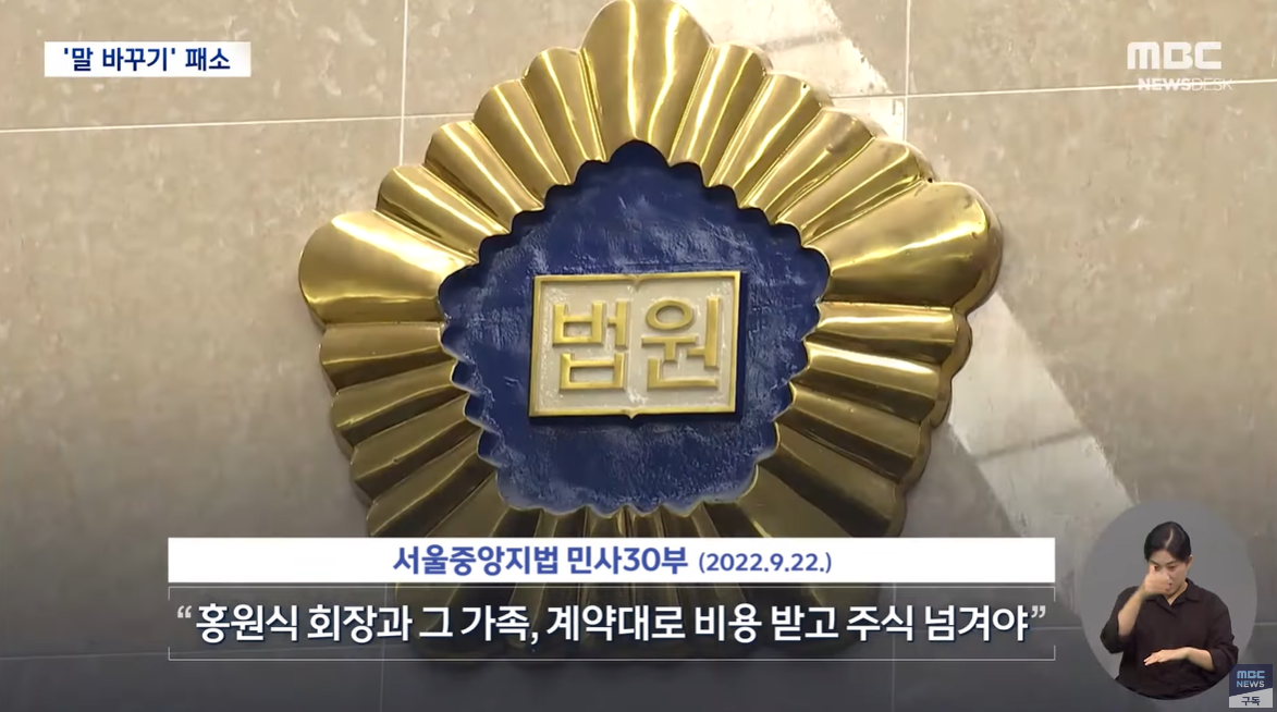 결국 법정 다툼이 이어졌는데, 결과는 홍 회장의 완패였습니다.