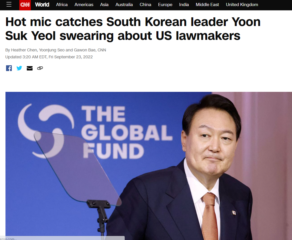 이어 욕설을 한 대상에 대해서도 "AFP와 워싱턴포스트는 '글로벌 보건기금을 내놓고 미국 의회 협조 구하겠다'고 한 바이든 대통령의 약속에 대한 말이었다고 보도했지만, 블룸버그는 '윤 대통령이 환담 도중 바이든 대통령에게 인플레이션 감축법(IRA) 법안 유예를 요청한 뒤 비속어 발언을 했다'고 보도하며 두 사건의 연관성을 강조했다"고 미묘한 차이를 설명했다.