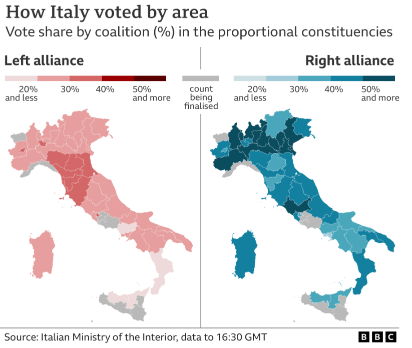 | 이탈리아 2022년 총선 결과. 반-이민자,반-유럽연합,이탈리아 우선주의 강세 이유. 무솔리니 파시즘 뿌리 다시 발호하는가? (0) | 2022.09.27 |