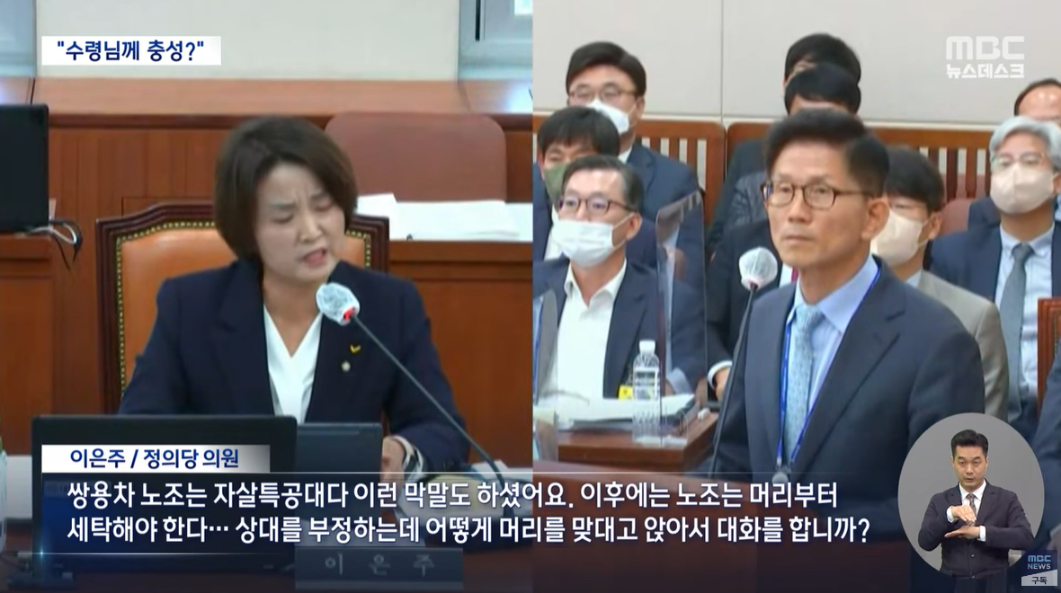 "쌍용차 노조는 자살특공대다 이런 막말도 하셨어요. 이후에는 노조는 머리부터 세탁해야 한다‥상대를 부정하는데 어떻게 머리를 맞대고 앉아서 대화를 합니까?"