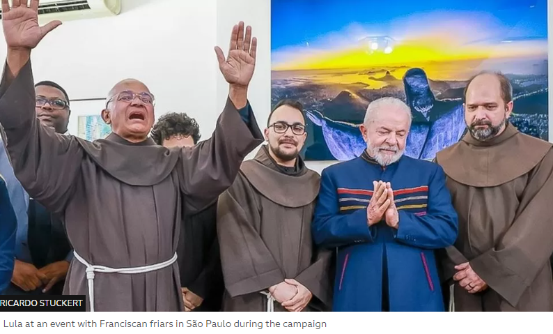 Lula at an event with Franciscan friars in São Paulo during the campaign