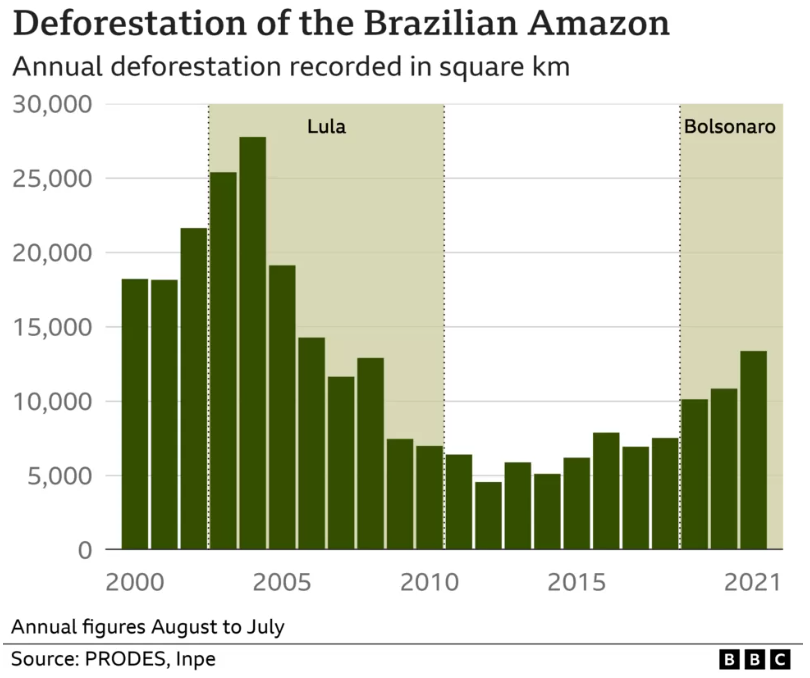 볼사나로 집권기는 1만 제곱 킬로미터로 시작해서 1만 3000 제곱 킬로미터까지 증가함 (2019년~2021년 )