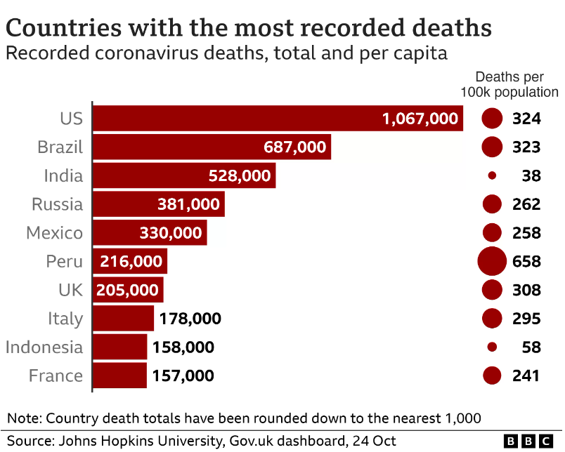 It also has one of the highest recorded global death tolls as a proportion of its population - although not as high as neighbouring Peru.