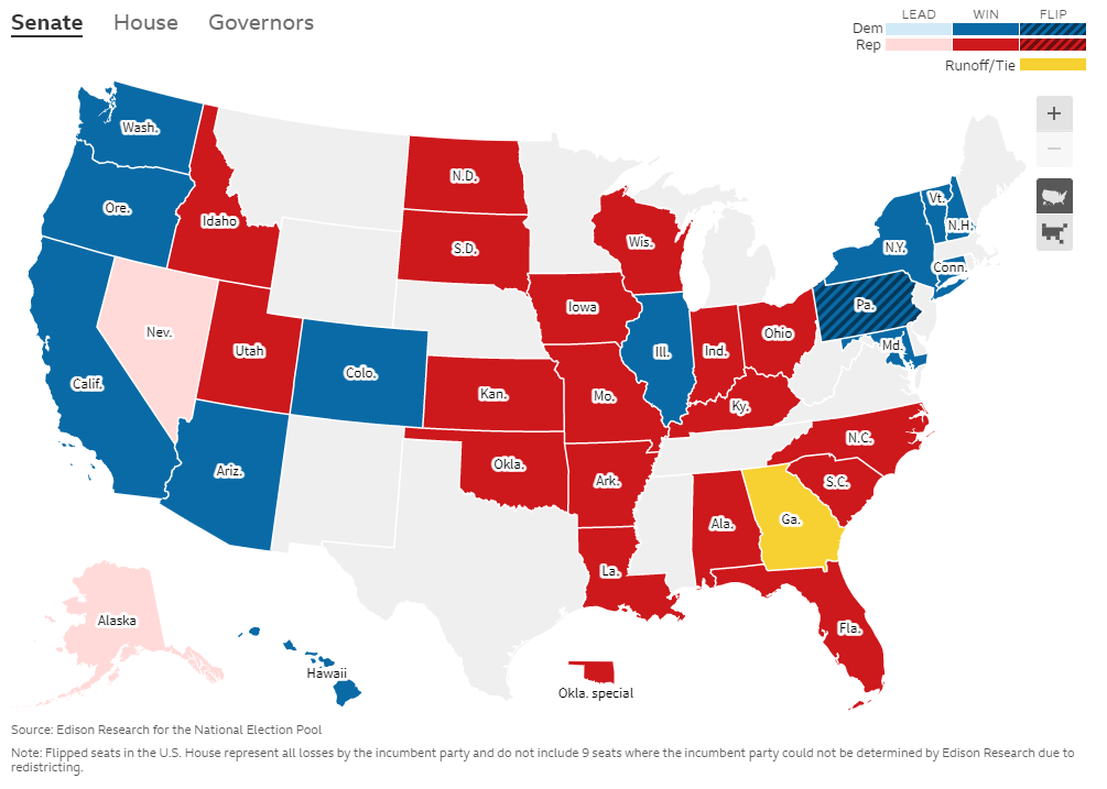 | 미국 2022년 중간선거, 상원 의석 지도 (0) | 2022.11.12 |