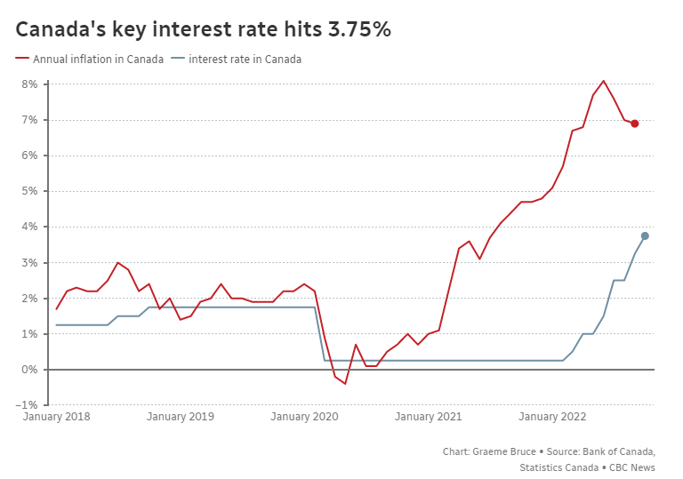 The Bank of Canada has raised interest rates six times since March. Rates have shot up from 0.25 per cent to 3.75 per cent. And the bank has warned it's not done yet.