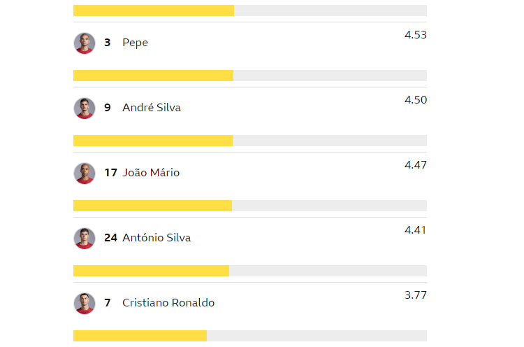 bbc 호날두 평점 3.77. 손흥민 9.15