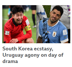 World Cup 2022: Ecstasy and agony as South Korea progress at Uruguay's expense on another dramatic day