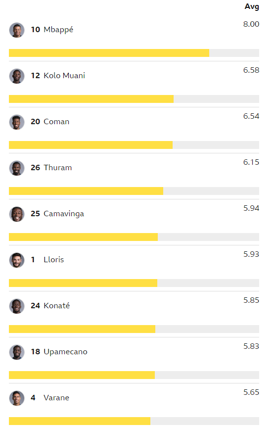 아르헨티나 수훈 선수는 당연히 메시이지만, 연장 마지막에 프랑스의 결정적인 슈팅을 막아내고 승부차기에서도 1개를 방어한 골키퍼 에밀리아노 마르티네즈와 미드필더 알렉시스 알리스터이다.