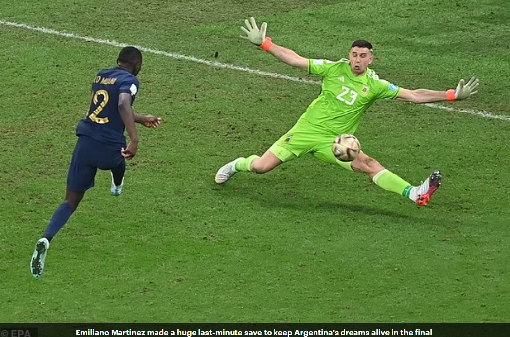 In a stunning period of extra time during which both sides exchanged chances, France could have won but for a superb last-gasp save by Martinez with his outstretched boot from Muani.