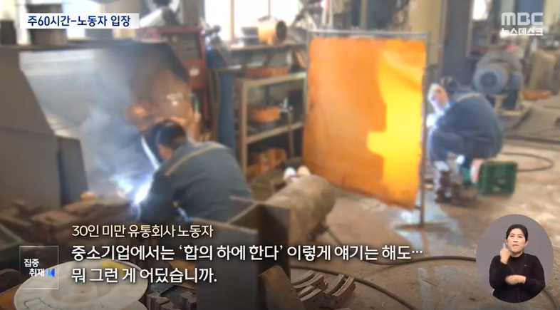 "<주 52시간 이상 일하려면 60시간까지. 직원들이랑 이제 회사 사장이랑 합의 하에 가능하다라고 하는데.> 중소기업에서는 '합의 하에 한다' 이렇게 얘기는 해도… 뭐 그런 게 어딨습니까."