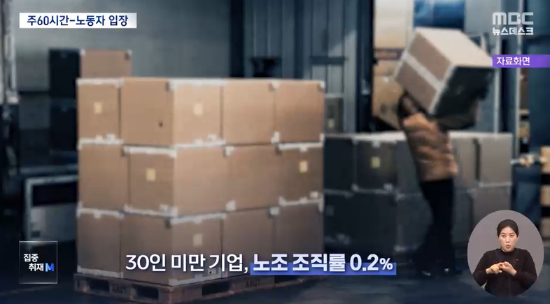 정부의 요구대로 된다면 결국 5인 이상, 30인 미만 사업장에서는 주 60시간 근무가 공식화되는 건데요.