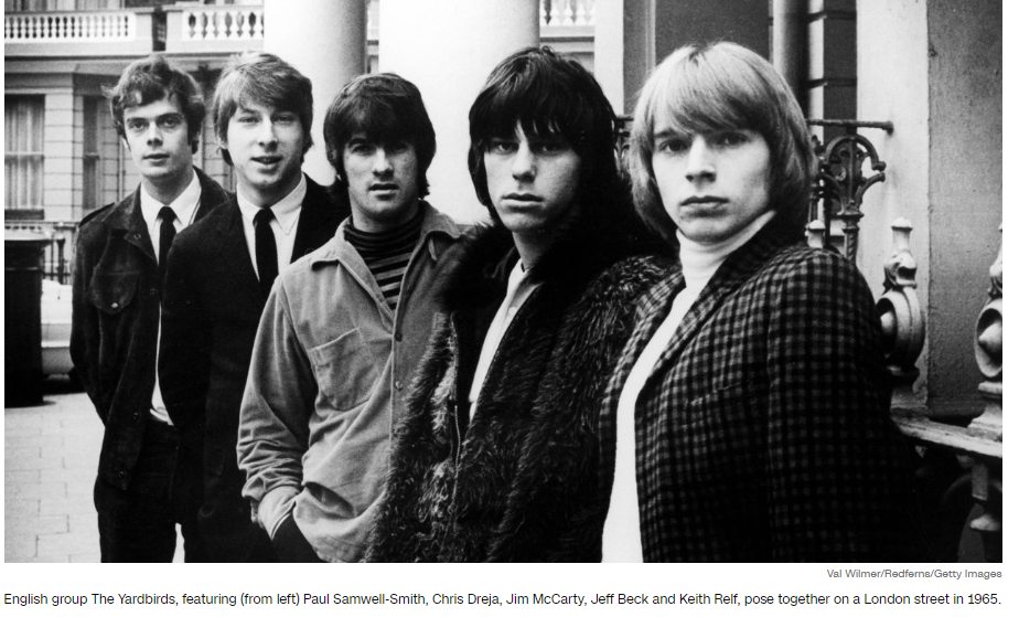He was in a few bands — including Nightshift and The Tridents — before joining the Yardbirds in 1965, replacing Clapton but only a year later giving way to Page. During his tenure, the band created the memorable singles Heart Full of Soul, I'm a Man and Shapes of Things.